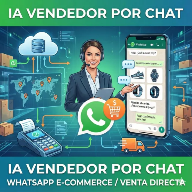Atiende chats entrantes de WhatsApp (o integraciones web), resuelve dudas y cierra ventas directamente, incluso procesando pagos o enviando links de checkout.